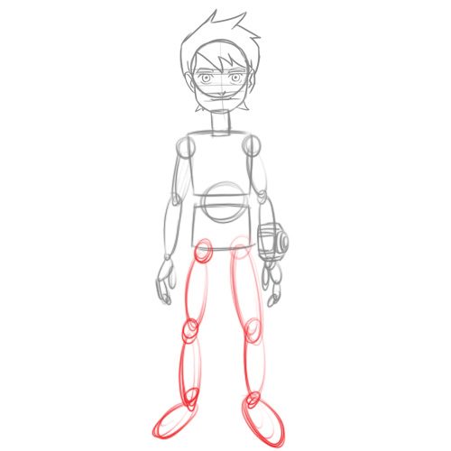 Bước 6: Phần chân cũng được phác họa bằng hai hình bầu dục dài, lồng vào nhau. Hai bàn chân sẽ là hai hình bầu dục nằm ngang, kích thước gần bằng với bàn tay của Ben.