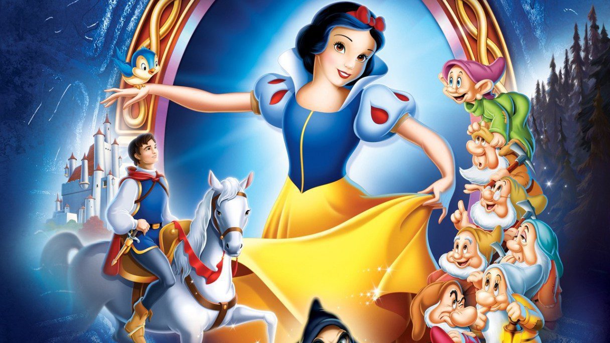 Phát hành tại Mỹ vào năm 1938, Snow White and the Seven Dwarfs là phim hoạt hình đầu tiên được Disney áp dụng công nghệ Technicolor. Câu chuyện lấy cảm hứng từ truyện cổ Grimm, kể về công chúa Bạch Tuyết trong sáng, xinh đẹp, bị mẹ kế là mụ hoàng hậu độc ác ráp tâm hãm hại vì ghen tị với nhan sắc của nàng. Sau khi phát hiện Bạch Tuyết vẫn còn sống và nương náu trong túp lều của bảy chú lùn tốt bụng, mụ hoàng hậu bèn cải trang thành bà lão, mang quả táo độc đến cho nàng. Vừa cắn xong miếng táo, Bạch Tuyết rơi vào giấc ngủ vĩnh hằng, không thể tỉnh dậy trừ khi được hóa giải bằng nụ hôn của hoàng tử. Phim live-action Snow White and the Huntsman (Bạch Tuyết và gã thợ săn) ra mắt vào năm 2012 tuy cũng lấy cảm hứng từ truyện cổ Grimm, song nó không hề liên quan đến phiên bản Walt Disney.