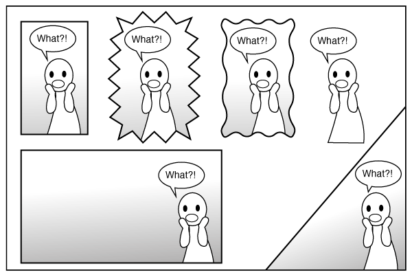 Khung truyện có nhiều hình dạng khác nhau, chứ không nhất thiết là hình vuông hay chữ nhật. Khung truyện hình tròn hay hình sao có khả năng truyền tải cảm xúc/thông tin đến độc giả. Khung truyện hình gợn sóng thường được dùng để để tả cảnh trong trí tưởng tượng, trong mơ hay trong ký ức, và nó không phải là một phần của câu chuyện ở hiện tại.