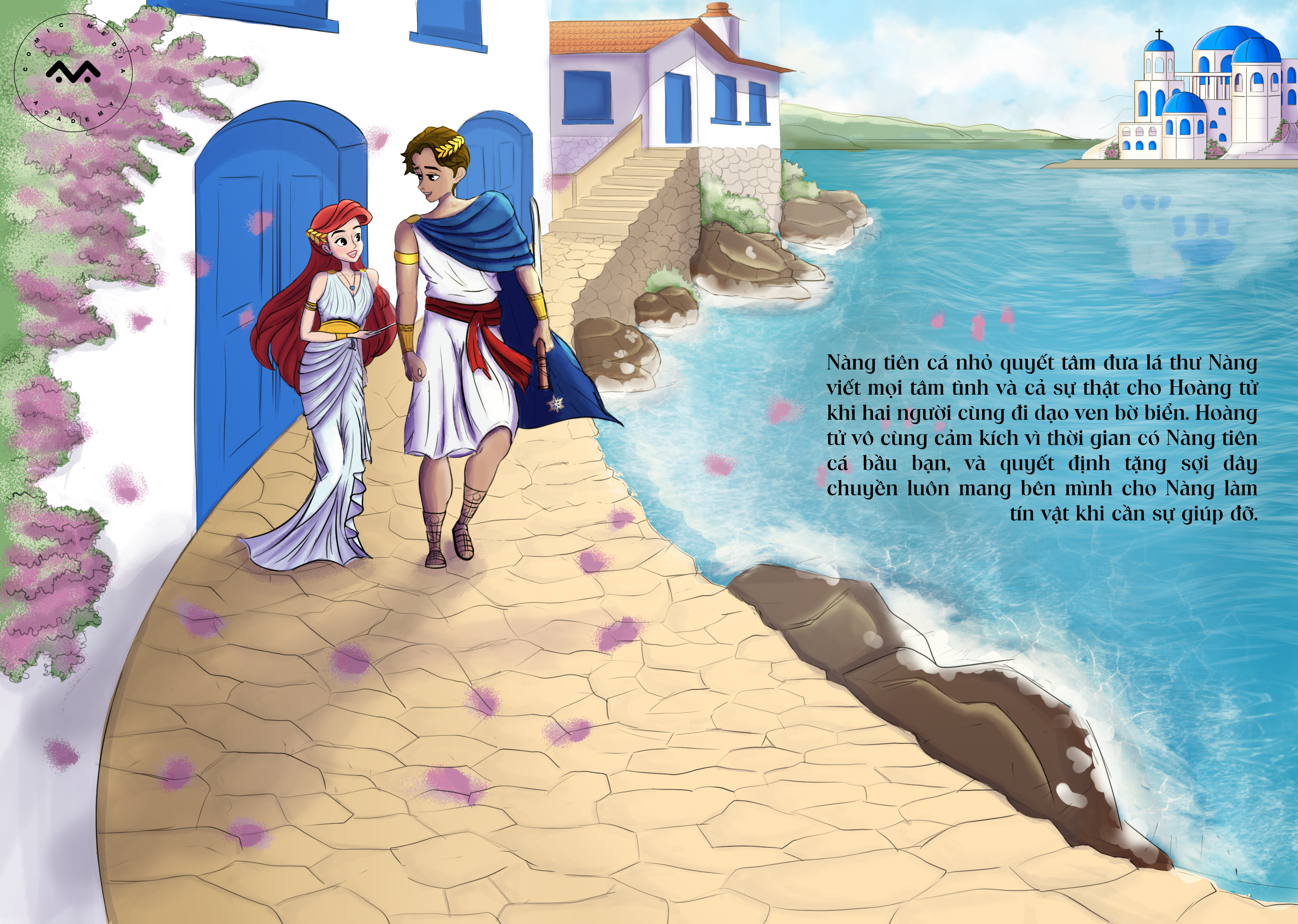 Lựa chọn một phần nhỏ trong truyện cổ tích nổi tiếng “Nàng Tiên Cá – The Little Mermaid” để minh họa. Bảo Trân đã sáng tạo thêm một cái kết mới cho nàng tiên cá và chàng hoàng tử.