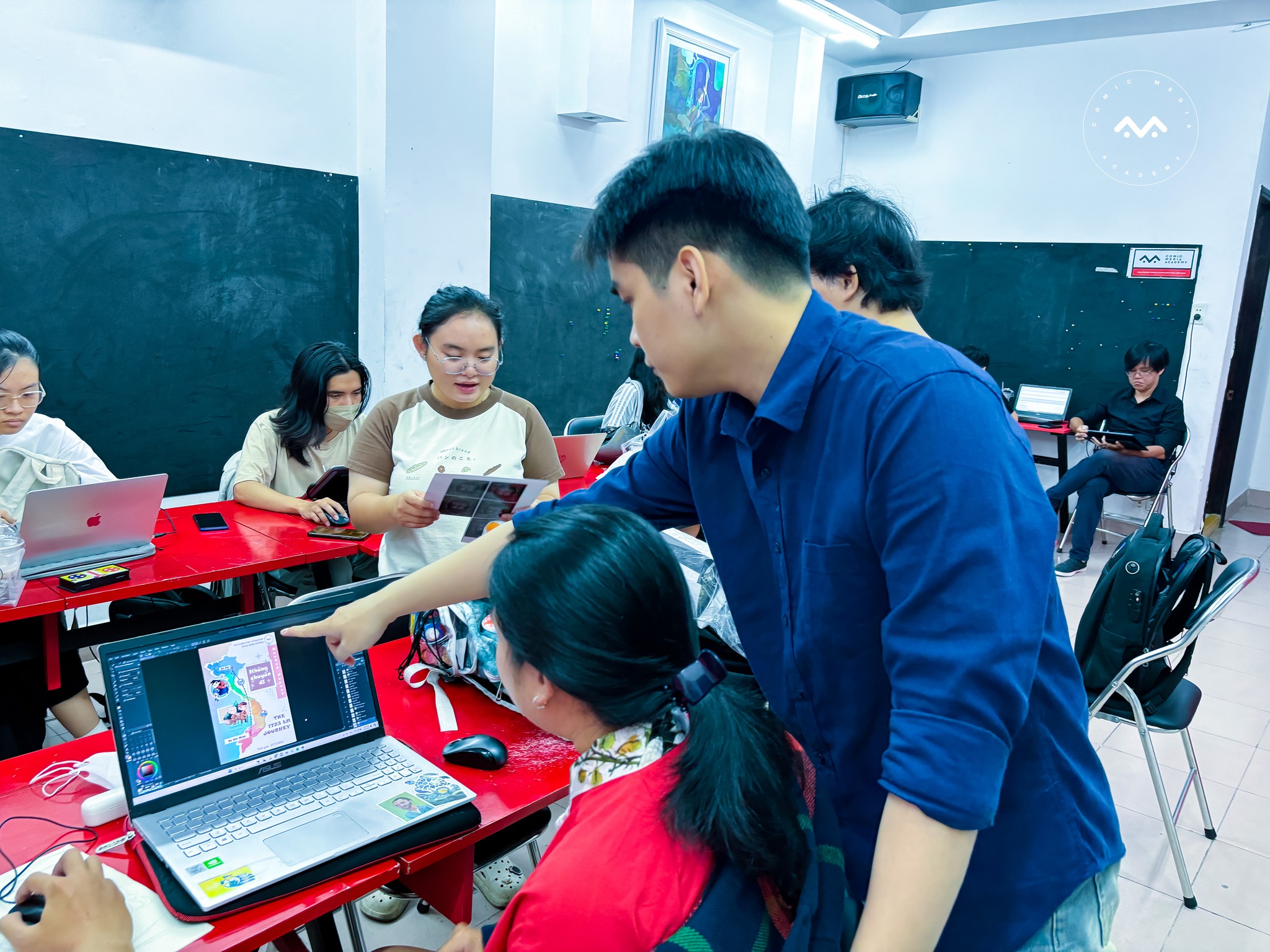 🧐 Để hỗ trợ các nhóm hoàn thiện poster, cuối tuần qua CMA đã tổ chức 1 buổi hướng dẫn đặc biệt, để các bạn trực tiếp sửa bài với Giảng viên chuyên ngành thiết kế, sau khi các bạn đã được Giảng viên hướng dẫn hỗ trợ các công đoạn làm poster ban đầu.