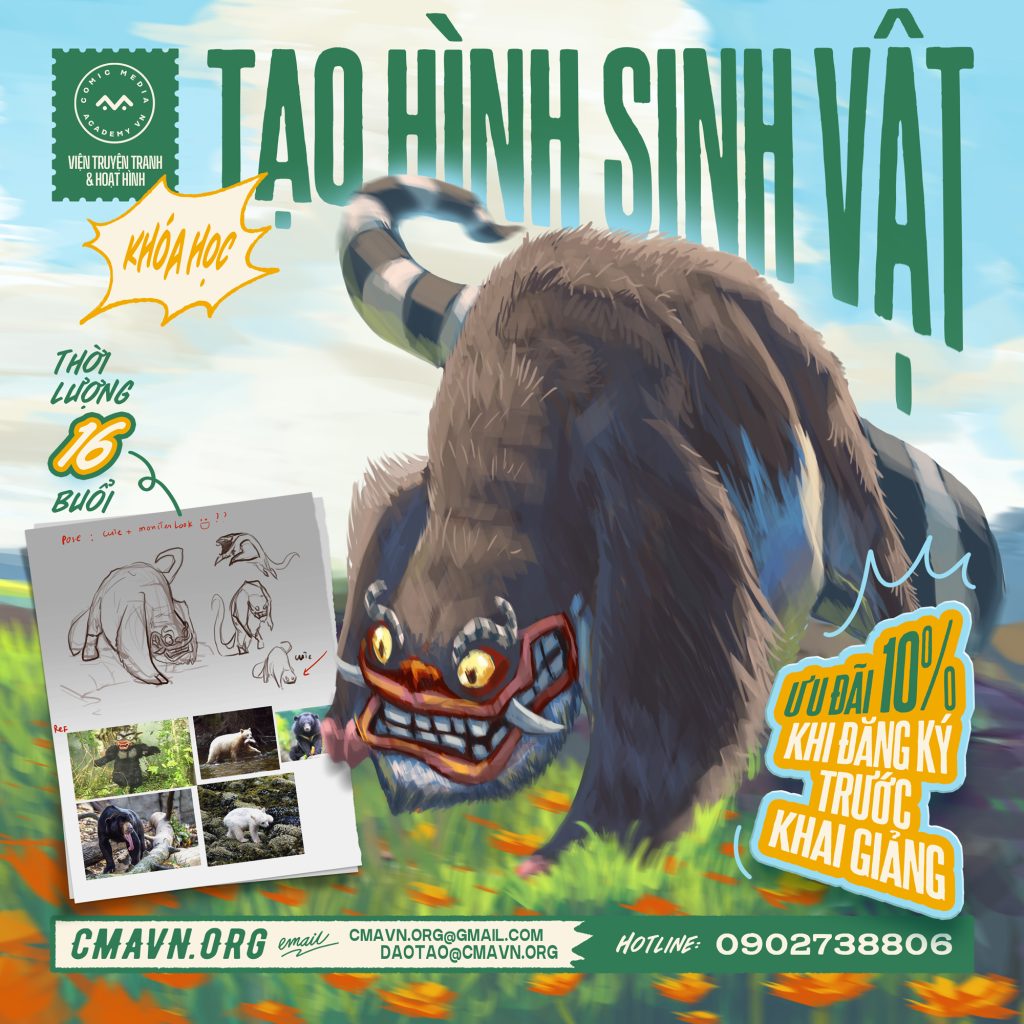 ❓ Bạn thích vẽ động vật, thích sáng tạo các sinh vật mới nhưng không biết bắt đầu từ đâu và phải trang bị những kiến thức gì? ✔ Khóa học 16 buổi của CMA giúp bạn tạo nên những sinh vật độc đáo từ con vật có thật, trái cây, đồ vật, thông qua quá trình vẽ, thiết kế, nghiên cứu về Anatomy. ❓ KHÓA HỌC DÀNH CHO AI? ✔ Đây là khóa học dành cho các bạn trên 15 tuổi yêu thích vẽ động vật và sáng tạo những sinh vật mới, các họa sĩ, designer muốn......