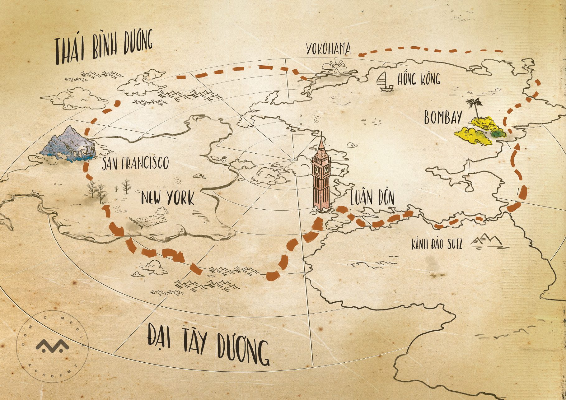 Đồ án tốt nghiệp – tác phẩm Tám mươi ngày vòng quanh thế giới do Nguyễn Lê Bích Trâm – Ngành Digital Painting khóa 05