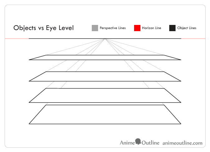Đường chân trời nằm phía trên vật thể ở hầu hết ví dụ trong bài viết này. Nhưng bạn cần biết rằng nó cũng có thể nằm phía dưới hoặc phía sau vật thể. Vị trí phụ thuộc vào mắt người xem đặt ở đâu. Nếu bạn nhìn vật thể từ trên xuống, thì đường chân trời sẽ nằm phía trên nó. Còn nếu bạn nhìn vật thể từ dưới lên, đường chân trời sẽ nằm phía dưới. Và nó sẽ nằm phía sau nếu bạn nhìn thẳng vào vật thể.