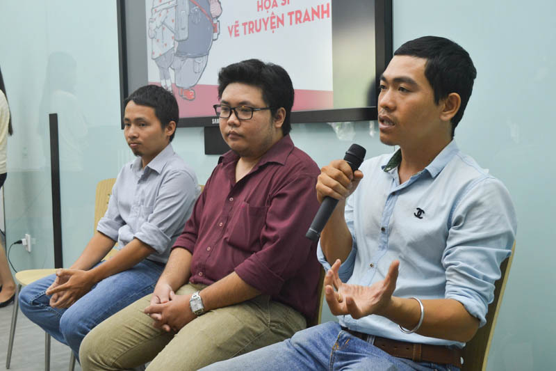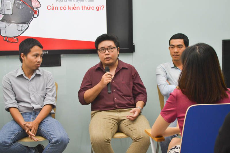 Buổi talkshow có sự tham dự của các thầy đến từ CMA, những người trực tiếp giảng dạy chính quy một ngành tương đối mới mẻ: Họa sĩ truyện tranh. Thạc Sĩ Quách Hồng Phúc, Thạc sĩ Họa sĩ Lê Thắng, Họa sĩ Trang Đức Huy đều là các họa sĩ có kinh nghiệm lâu năm trong nghề, và hôm nay các thầy cùng đến, chia sẻ kinh nghiệm, trao đổi thẳng thắn với chúng tôi – những người trẻ và đam mê làm truyện tranh, về những thắc mắc, những băn khoăn về con đường trở thành một họa sĩ truyện tranh chuyên nghiệp.