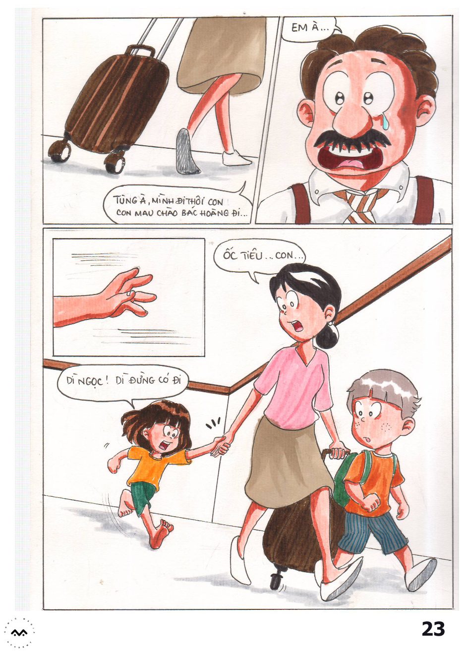 Ốc Tiêu” được thực hiện dưới bàn tay của bạn Nguyễn Quốc Bảo Trang  học viên lớp Truyện tranh cấp tốc Khóa 09. Là một câu chuyện đầy thú vị xoay quanh nội tâm của Ốc Tiêu, một cô bé nhỏ phải đối mặt với sự thay đổi lớn trong gia đình mình. Nội dung xoay quanh đề tài gia đình dù không quá mới mẻ nhưng như thế đã đủ để Trang tạo nên một câu chuyện gần gũi nhưng cũng không kém phần cảm động. Vậy rốt cuộc câu chuyện về Ốc Tiêu cảm động thế nào, mời các bạn cùng đọc tác phẩm nhé!