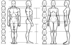 Ví dụ, đầu thường có chiều ngang gấp 5 lần chiều rộng của mắt. Đường mắt nằm giữa đỉnh đầu và cằm. Đường chân mày thẳng hàng với chóp tai. Điểm giữa của mắt thẳng hàng với khóe miệng. Và nửa dưới khuôn mặt được chia thành 3 phần với chóp mũi và đường miệng nằm trên đường 1/3.