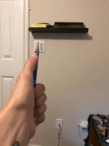 Bằng cách giữ cây que, cọ vẽ, hoặc bút chì ở khoảng cách một cánh tay, họa sĩ có thể xác định được tỷ lệ. Ví dụ, trong bức ảnh trên, bạn biết khoảng cách từ công tắc đèn đến đáy kệ phía trên nó bằng 2/3 chiều cao tấm che công tắc đèn. Và bạn cũng biết rằng tấm che công tắc đèn không hoàn toàn vuông vắn. Thực ra chiều cao của nó không bằng chiều rộng.