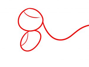 Bước 1: Đầu tiên, chúng ta  vẽ một hình tròn cho phần đầu của khủng long. Vẽ tiếp một hình tròn ở vị trí xương hàm dưới thượng. Sau đó, vẽ đường cổ của khủng long như hình vẽ bên dưới.