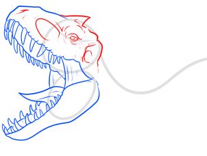 Bước 2: Tiếp theo, vẽ hình dạng hàm trên như  hình và cố gắng vẽ sao cho chúng trở nên gồ ghề hơn. Tương tự, vẽ các đường gồ ghề cho hàm dưới thượng như khi vẽ hàm trên của khủng long.