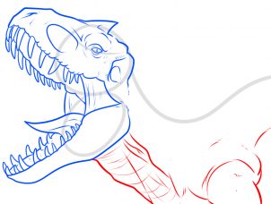 Bước 7: Xoá bỏ các nét không cần thiết . Như vậy, bạn đã vẽ xong hình dáng của chú khủng long Indominus Rex trong Jurassic World.